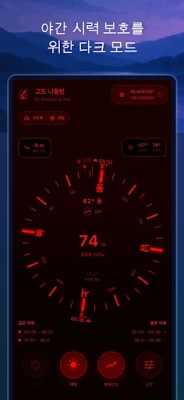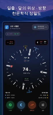 모험의 방향을 제시할 정교한 나침반 기능은 진북과 자북을 모두 표시하며, 섬세한 햅틱 피드백으로 어떤 상황에서도 길을 잃지 않도록 돕습니다. 자기 간섭까지 감지하여 안내하는 스마트함은 신뢰도를 더합니다. 또한, 사진작가와 천문학도들을 위한 특별한 기능도 놓칠 수 없습니다. 태양과 달의 고도 및 방위각, 일출/일몰, 월출/월몰 시각은 물론, 황금빛 골든 아워와 신비로운 블루 아워의 정확한 시작과 끝을 알려주어 최고의 순간을 포착할 수 있게 합니다. 복잡한 좌표도 소수점과 DMS 형식으로 자유롭게 전환하고 원터치로 복사할 수 있어 편리함을 더했습니다.