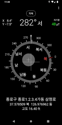 나침반 앱은 단순히 방향만을 가리키지 않습니다. 현재 사용자의 정확한 위치 정보를 한눈에 파악할 수 있도록 주소, 위도, 경도, 그리고 고도까지 상세히 표시합니다. 또한, 기기의 수평을 정밀하게 측정하는 수평계 기능과 주변 자기장의 강도를 감지하는 기능은 예측 불가능한 야외 환경에서 더욱 유용하게 활용될 수 있습니다. 진북과 자북 사이를 자유롭게 전환하며 사용자에게 가장 적합한 방향 정보를 제공하고, 단말의 기울기 각도까지 보여주어 세밀한 지형 파악을 돕습니다.