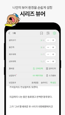 시리즈는 독서의 즐거움을 배가시키는 풍성한 혜택과 최적화된 독서 환경을 제공합니다. 매일 밤 10시, 자동으로 지급되는 '매일10시무료' 이용권과 정해진 시간 동안 파격적인 무료 회차를 제공하는 '타임딜', 그리고 2시간마다 소설과 만화 이용권을 증정하는 '프리패스'까지, 언제나 새로운 이야기에 몰입할 기회를 드립니다. 나아가, 듣기 기능(TTS)으로 눈을 쉬게 하며 이야기를 즐기고, 감명 깊은 장면은 아름다운 배경과 함께 이미지로 공유할 수 있습니다. 테마, 글꼴, 글자 크기 등 세밀한 커스터마이징 기능으로 자신만의 완벽한 독서 공간을 만들어 보세요. 시리즈와 함께라면, 모든 이야기가 특별해집니다.